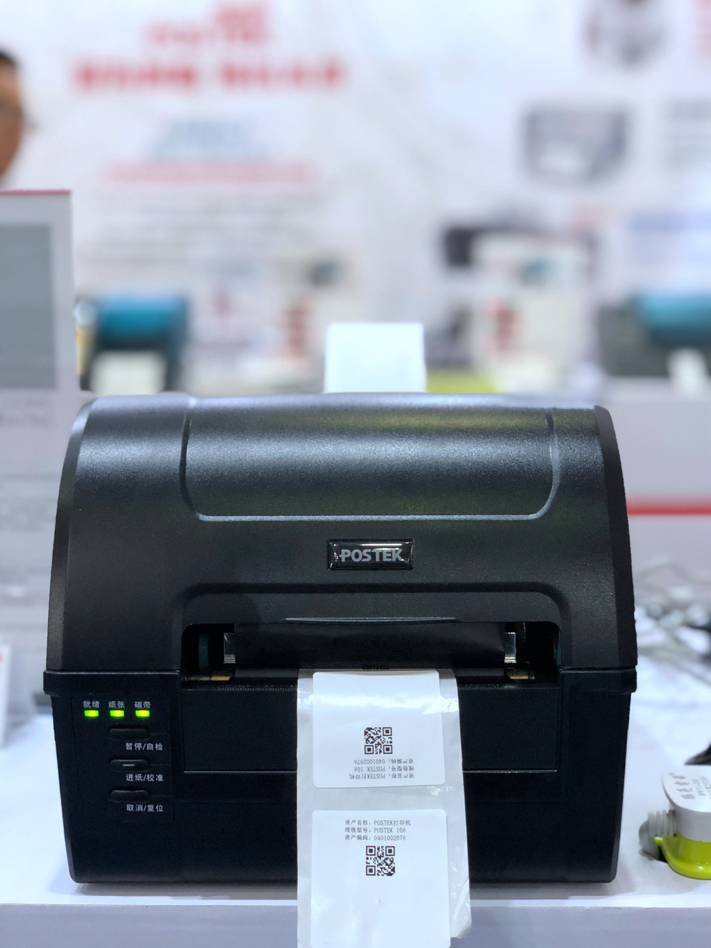 POSTEK T198系列高頻RFID打印機演示用于固定資產管理的電子標簽讀寫打印